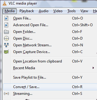 Step 1. Start the VLC media player, then click Media ->Convert/Save.