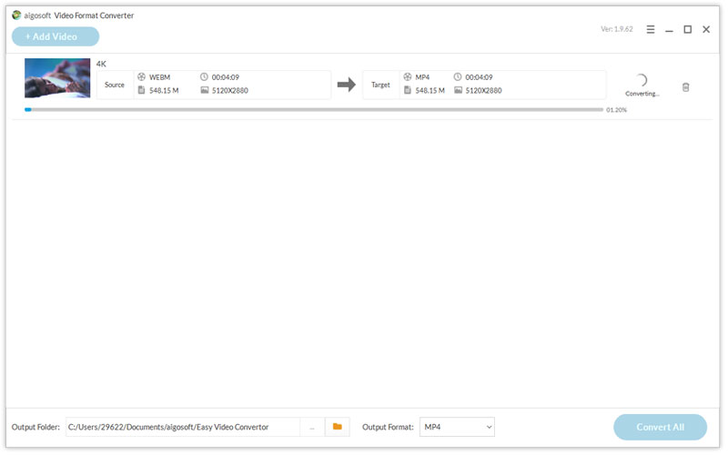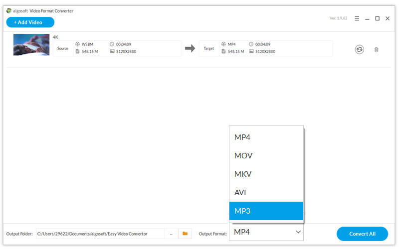 Aigosoft Video Format Converter目前支持任意格式的视频转换为mp4,mkv,avi,mp3等
